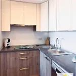 Het appartement bevat een complete keuken met een magnetron, een waterkoker en een koelkast.